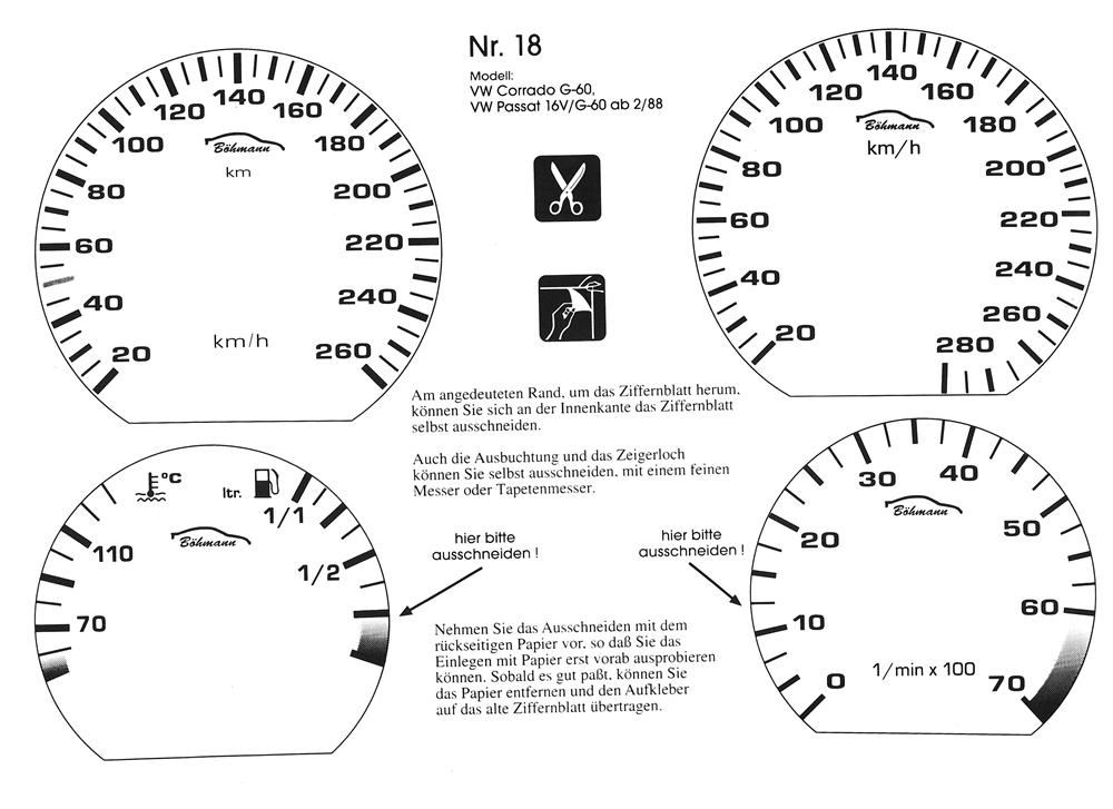 BMS Racing Tachofolie weiß für VW Corrado G-60, VW Passat 16V/ G-60 ab 2/88